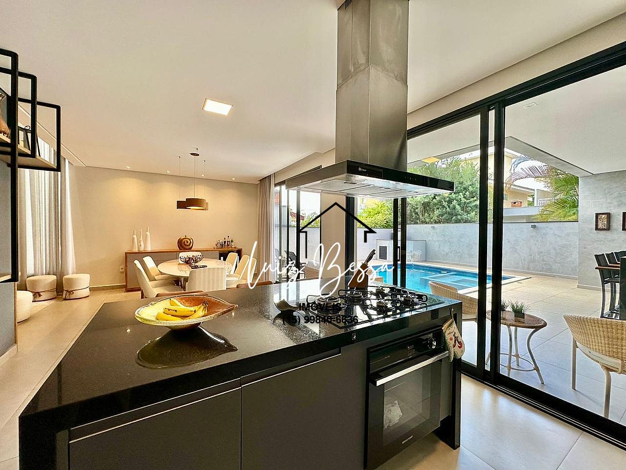 • Cozinha Integrada, equipada com bancada e ilha em granito;